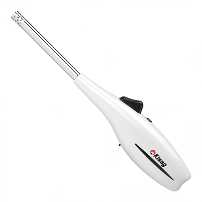 gas lighter with extended neck for easy lighting of a.o. candles and gas stoves