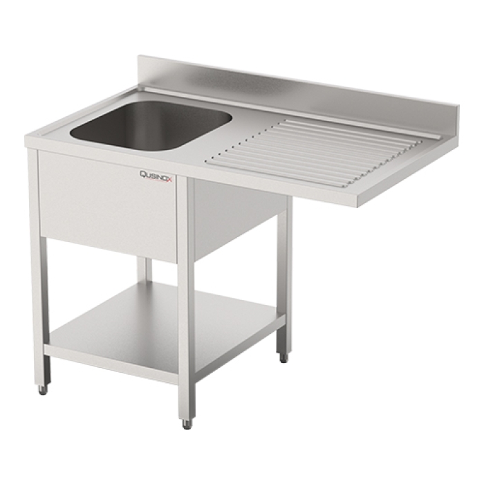 model with sink on the left, featuring a rear backsplash, undershelf, and substructure suitable for a dishwasher. Ideal for an efficient and practical kitchen setup