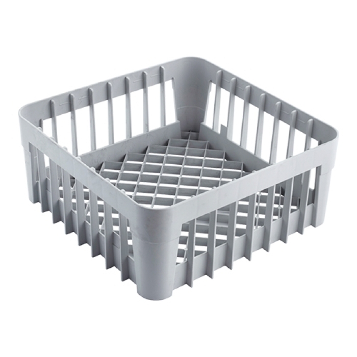 de universeel korf heeft een grofmazige bodem en zijkanten, daardoor wordt er een zo groot mogelijke water circulatie verkregen, welke ook zorgt voor gedegen en droog vaatwerk